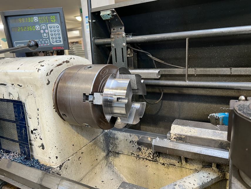 👉 Alexis, élève de Terminale BAC PRO a d’abord réalisé un carottage sur tour traditionnel pour dégrossir la matière brute. Il est ensuite venu réaliser l’alésage et le diamètre extérieur de la pièce.