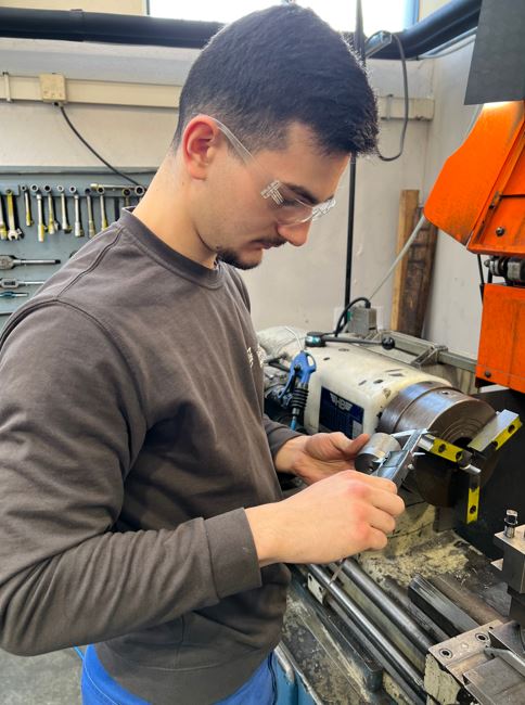 Ensuite, la pièce a été reprise par son camarade Yessine sur un tour numérique pour finaliser le deuxième côté de la pièce en usinant la tige filetée et le perçage en bout.