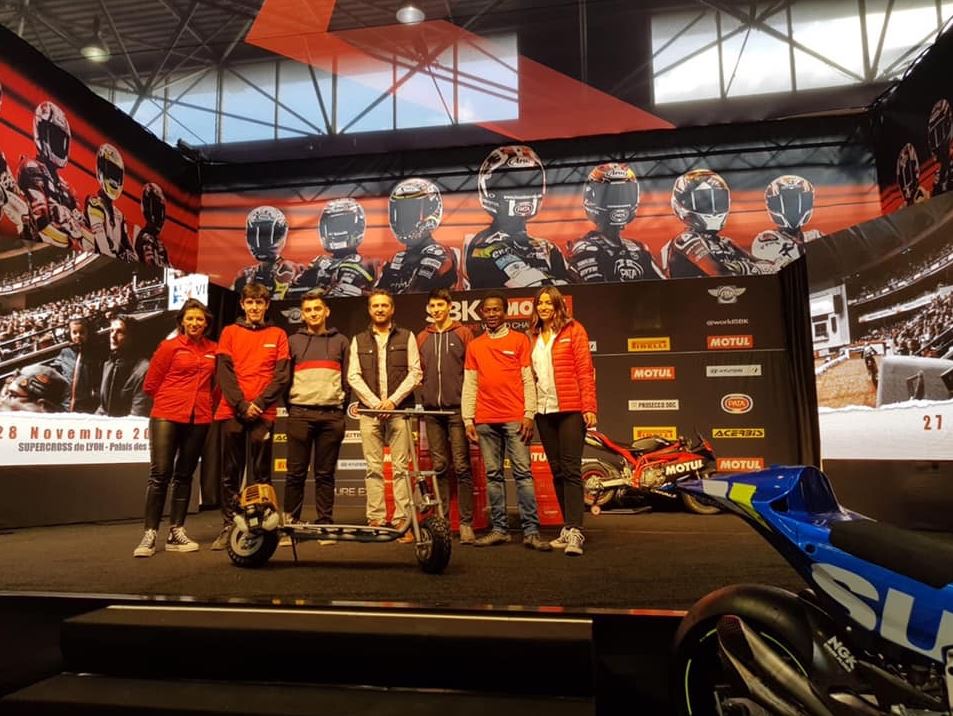 Cette participation nous a permis de promouvoir les écoles de production et de présenter notre prototype de trottinette à moteur thermique conçu et développé par nos élèves et notre maître pro Denis.